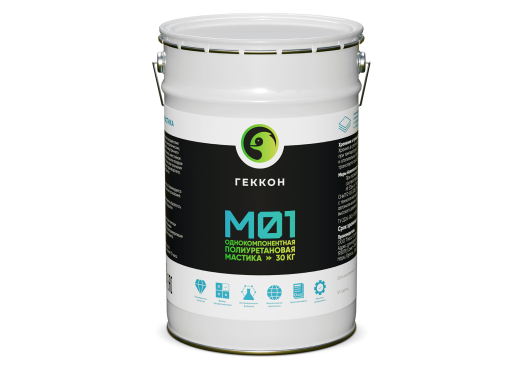 Геккон М01 - Однокомпонентная полиуретановая мастика, отверждающаяся под воздействием естественной влажности воздуха с образованием бесшовной и прочной резиноподобной пленки на различных изолируемых поверхностях. От ряда прочих полимерных покрытий отличается относительно малой чувствительностью к погодным факторам, позволяющей наносить бездефектные покрытия в условиях сырости, тумана, низкой температуры окружающего воздуха и изолируемой поверхности, без учета точки росы. Химический состав позволяет нанесение покрытия толщиной в несколько мм. без образования газовых пузырьков, снижающих качество пленки.